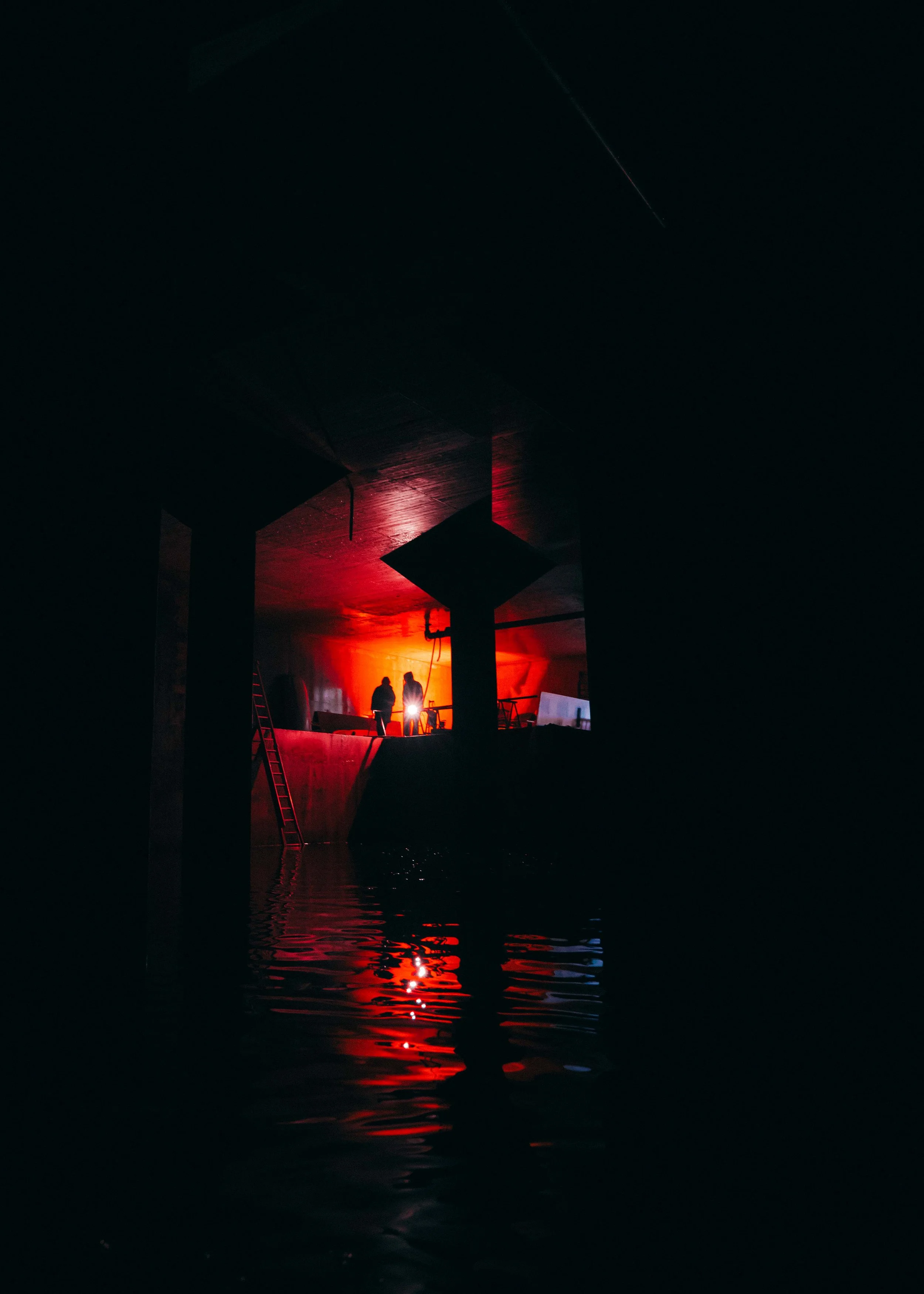 In een oude wateropslagkelder onder de Maas reist een enorme, eindeloze galm door de ruimte. VACUÜM neemt je mee naar een ondergrondse wereld waar de vallende druppels uit het plafond ons tijdsbesef vervagen. Stemmen weerklinken in hypnotiserende aria's boven het water, op de achtergrond is een ritmisch gekabbel te horen. We zien niets, we horen alles. Tijd en ruimte worden één. Stilte krijgt plotseling een nieuwe betekenis, het kleinste geluid wordt groter dan ooit. De kelder verandert in een buitenaards landschap, een andere beschaving, een cocon. Je wordt kleiner. Je voelt je verbonden. Je past. De ruimte neemt het over. Stilte krijgt plotseling een nieuwe betekenis, het kleinste geluid wordt groter dan ooit. De kelder verandert in een buitenaards landschap, een andere beschaving, een cocon. Je wordt kleiner. Je voelt je verbonden. Je past. De ruimte neemt het over.